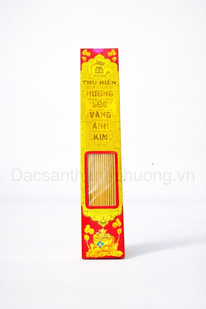 • 1 hộp hương lộc vàng ánh kim Thu Hiền gồm 92 nén, dài 38cm, đậu tàn vàng ánh kim
